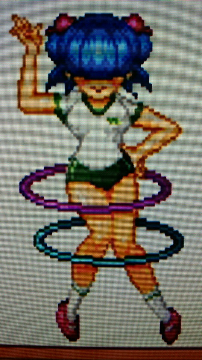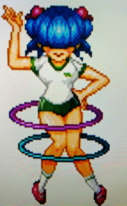 #ハーティーパイロッツ ボス4人目。 体操服の目隠れお姉さん。 2段階目はヘアゴムを取って体操服の中が! 体育つながり!? #デザエモン #シューティングゲーム #STG #ドット絵 #pixelart