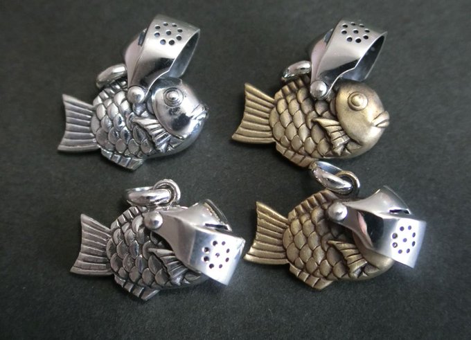よろえ!たいやきくん。武器アクセサリー屋の葛藤が産み出した鯛焼きの様な何か。首から下げても良し、キーリングが付属するのでキーホルダーにしても良し。今回はオールシルバー版も販売します。 #デザフェス #デザフェス57 #デザフェスお品書き