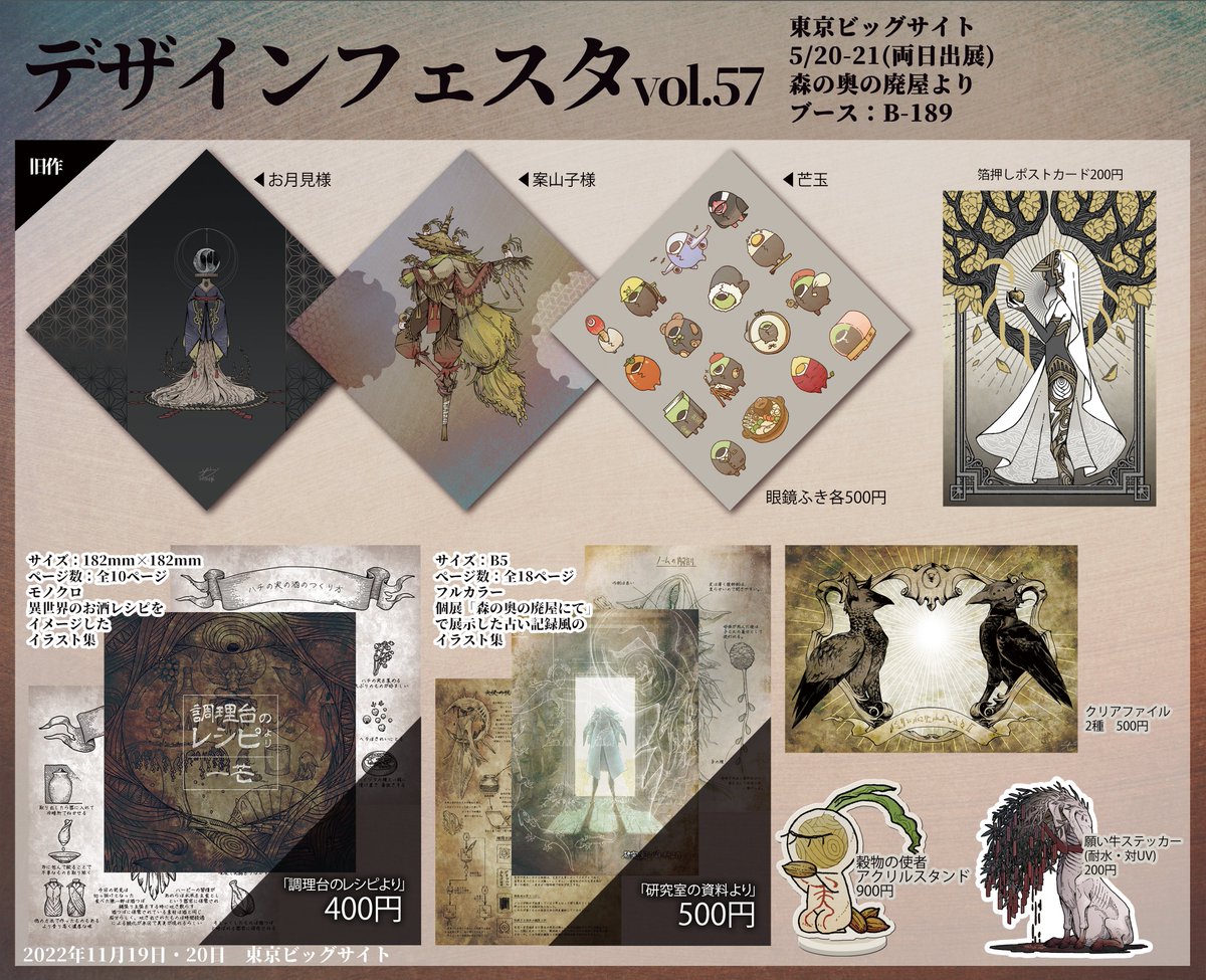 デザフェス57のお品書きができました! 当日はよろしくお願いします! [会 場]東京ビッグサイト [ブース]A-11(西館1F) [出展日]5/20-21(両日) #デザフェス #デザフェス57 #デザフェスお品書き