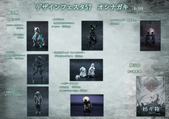 デザインフェスタのお品書きです!! 日時:5/20(土)/21(日) 11:00〜19:00 ブース番号:K-268 基本的に土曜日から全ての在庫を先着で販売予定です。 皆さんにお会い出来るのを楽しみにしております!! #デザフェス57 #デザフェスお品書き