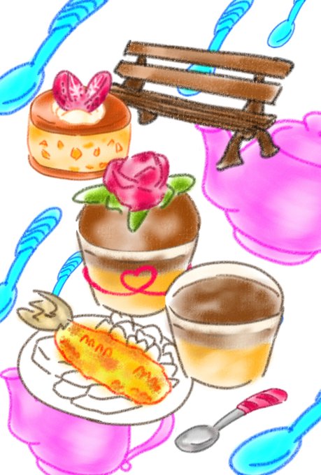 (5/13) Mo u nt V l e #art #landscape #景観 #illustration #conceptart #子供 #創作 #illustration #イラスト #創作 #一次創作 #rkgk #カップル #couple #dessert #デザート
