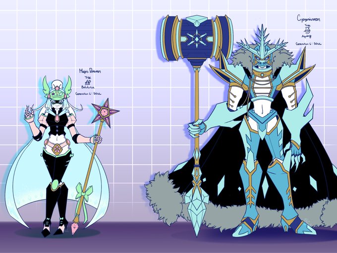 “Mages from Ancient Witchleny” Finished these two base color references while working on the last raffle prize ywy) Anyways hope you guys enjoy Magus Dukemon and Cyrogenianmon! … #digimon #デジモン #デジタルモンスター #characterdesign #digitalart #digifake #Procreate