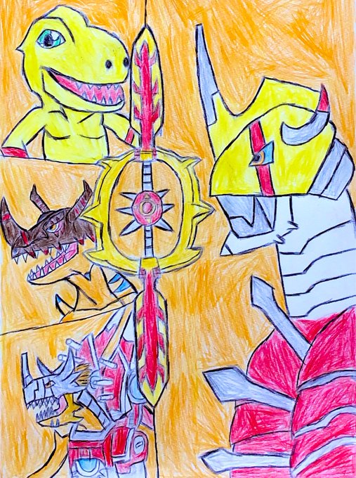 デジモン過去絵・デジモンセイバーズ マサル&シャイングレイモンイラスト(2007年作) アニキが先に殴るやつw #デジモン #デジモンセイバーズ #Digimon #絵描きさんフォロバ100 #絵描きさんと繫がりたい