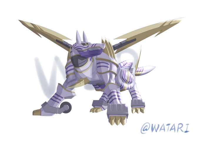 イラスト進捗:光沢をつけるのが楽しいです。完成が見えてきた……? #ガルムモン #デジモン #Digimon #デジモンフロンティア #イラスト進捗 #毎日投稿 pixiv.net/artworks/99748…