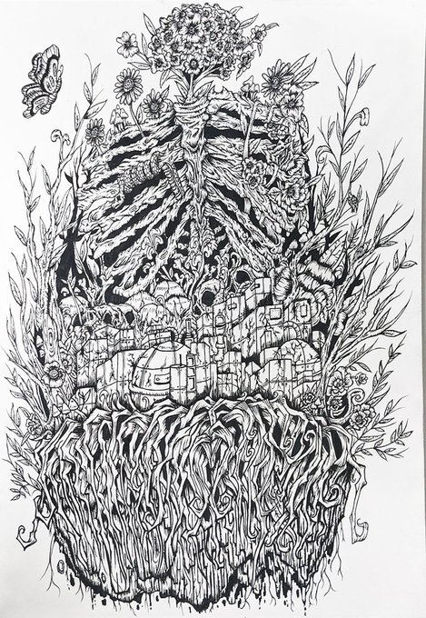 とあるコンペで応募したイラスト。惜しくも落選したけど頑張った! ⇦「bouquet」⇨「森と梟」 #絵描きの輪 #私の絵柄が性癖に刺さる人に届いてほしい #イラスト #イラスト好きな人と繋がりたい #絵描きさんと繫がりたい #メタル #デスメタル #デスコア #スラミングデスメタル #仕事募集中 #ペン画