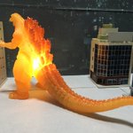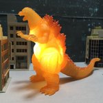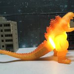 #夜のフィギュア撮影会 お題『問題』 問題発生!?メルトダウン寸前のバーニングゴジラが2体に増えた!😆 (←バーニングゴジラ ゴジラ・フェス 番外編 新宿総進撃ver. にLEDライトを仕込んでみた) #ゴジラ #Godzilla #バーニングゴジラ #ムービーモンスターシリーズ #ムビモン #ソフビ #デスゴジ