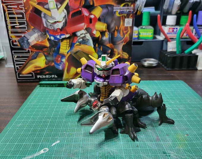 デビルガンダム製作中☺️ ただ、塗装で割と苦労してる😅 今日はここまでかなー😇 クリアカラーのデビルガンダム出るみたいだけど、HGで出して欲しいですねぇ😂 #ガンプラ #今月作ったプラモ晒そうぜ #デビルガンダム