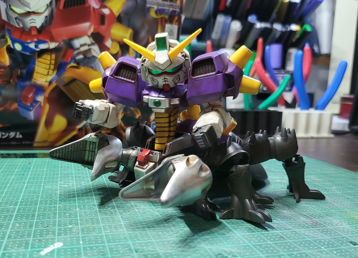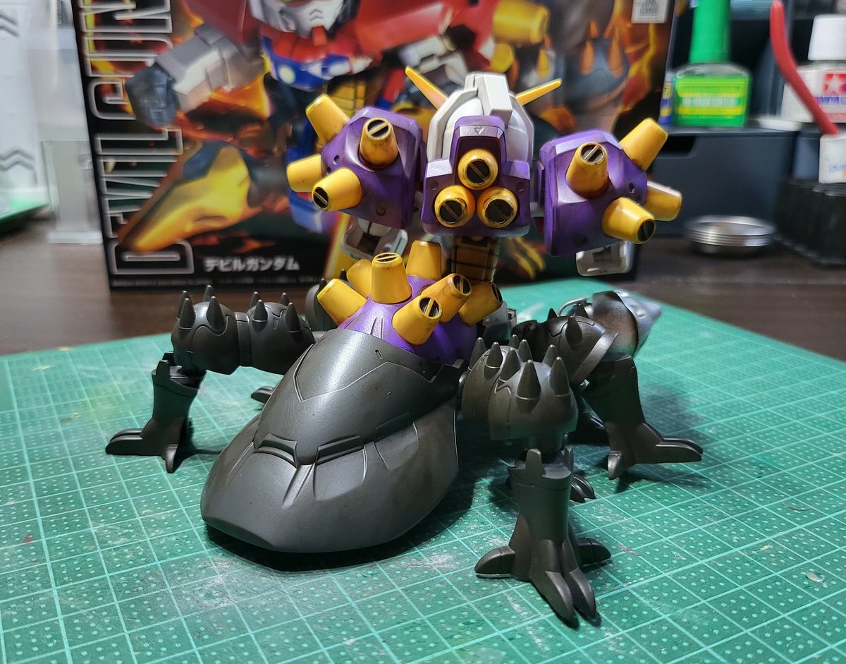 #どうでもいい報告をする #ガンプラ #デビルガンダム イラストのような足にしたくて関節を仕込みました😋 思ってたより ちゃんと たためたー‼️😆💥💥ウヒヒ-! いつものことだけど、もっと整えてから写真を撮ればいいのにね…😫