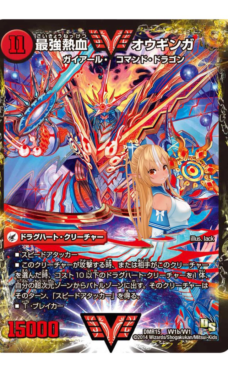 フレアちゃんが最高級の透過素材を投下したので以前描いたふーたん×オウギンガを簡易的にカード化してみました!! どっちもデザインがlack先生なので…いつかBBPでもデュエプレでもいいのでホロライブとデュエマでコラボしてこれを公式化してッ…!(多分無理) #しらぬえ #デュエマコラ twitter.com/shiranuiflar…