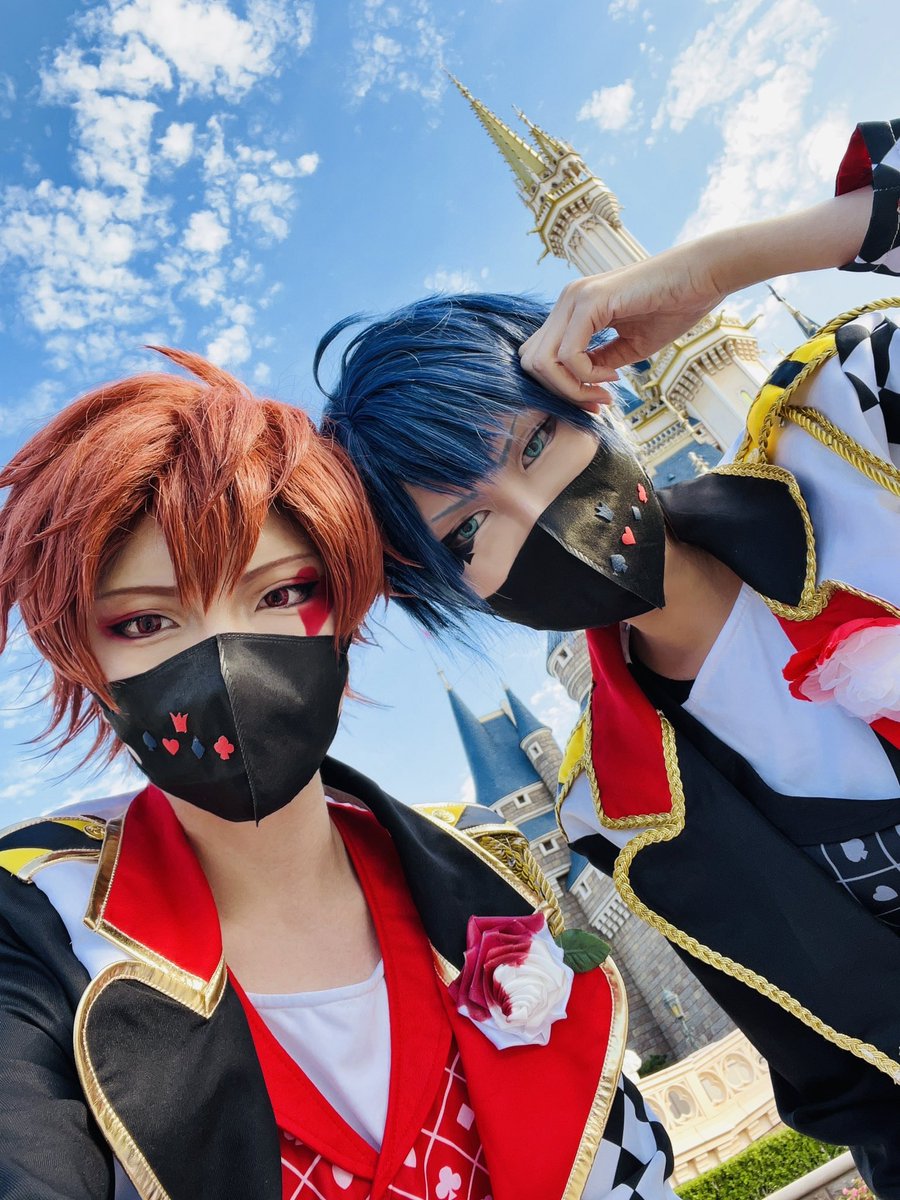 昨日デュースと行ってきました〜!!🏰 前日ホテルではしゃぎすぎて睡眠時間1時間の2人でございます 眠気でちゃんと笑えてない笑 #Dハロ仮装2022 #Dハロ2022 #エース・トラッポラ #デュース・スペード