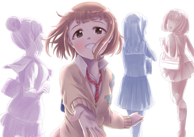 トロちゃんと瑠璃子さんと紗友里ちゃん相当の人物のイラストです‼️ (ポーズは、MOTTO!繋がりで、凪のカードの背景で晴とつかさがやってたポーズが可愛かったのでお2人にしてもらってました…!📷✨トロちゃんもお写真で似たポーズしてましたね!伝わりにくくて申し訳ない‼️) #デレパ #cg_ootd_day2