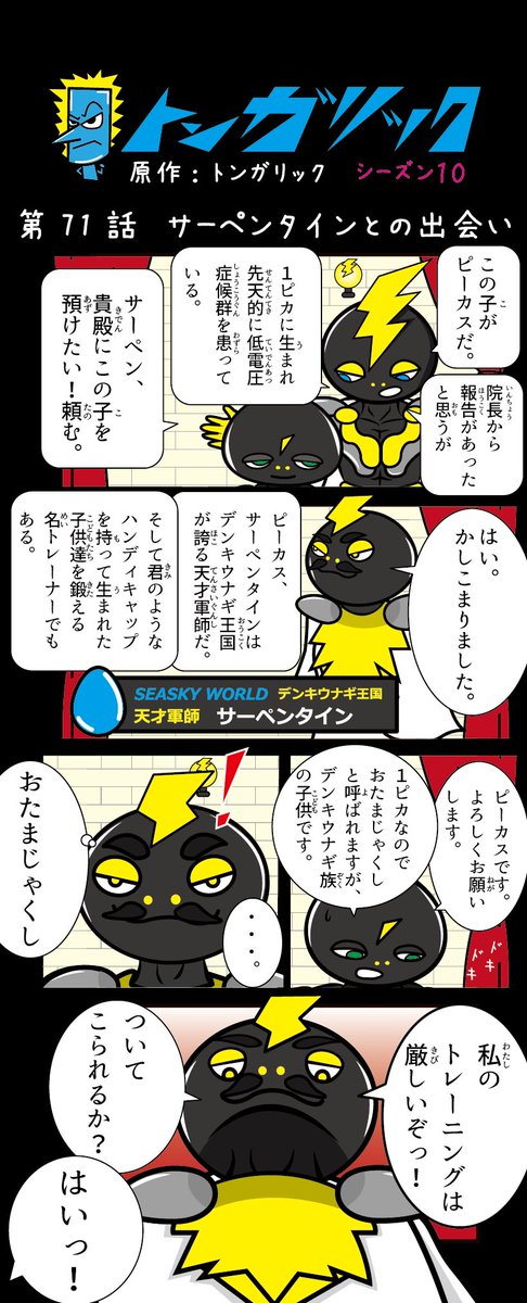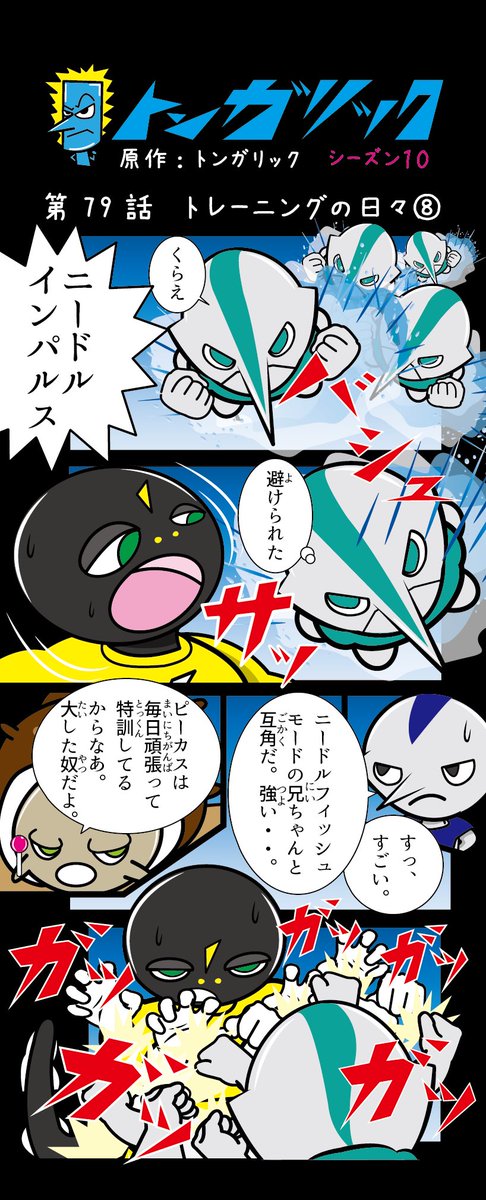 ピーカス過去編もあと数話。 早く時間軸を現在に戻さねば。 トンガリックの最新話です。 ご一読ください。 LINEマンガ 『トンガリック』👇 manga.line.me/indies/product… #4コママンガ #4コマ漫画 #トンガリック #デンキウナギ #漫画が読めるハッシュタグ #漫画好きさんと繋がりたい #イラスト