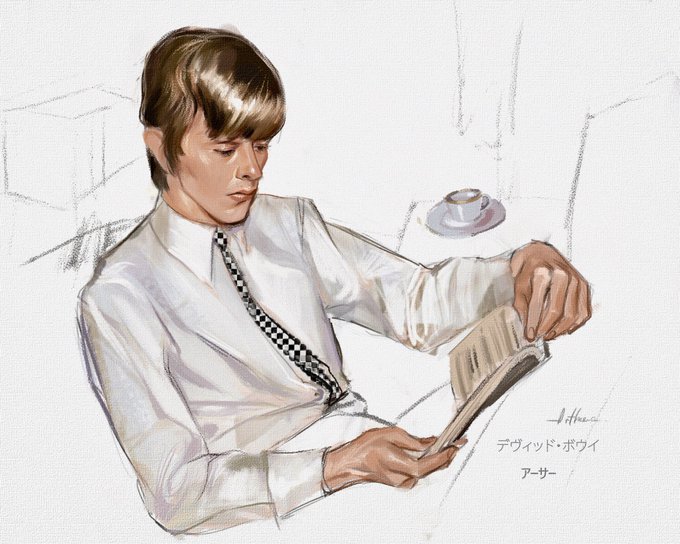 #長髪が似合うミュージシャン デヴィッドボウイ ハンキー・ドリー期の長髪ボウイを描いてる時が一番幸せ。 ボウイは長髪男子の鑑! #DavidBowie #BowieForever #デヴィッド・ボウイ #長髪男子 #みんなで楽しむTwitter展覧会 #落書向上委員会 #芸術同盟 #落書きギルド #長髪