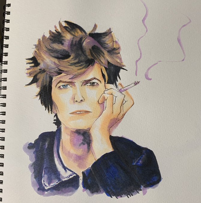 これ、誰を描いたのかわからないでしょうね… デヴィッドボウイ のつもりなんですが。 似ない 全然 己が画才の無さに涙と切なさが込み上げる 眺めているとまるでアブストラクトアート #デヴィッド・ボウイ #長髪 #長髪男子 #みんなで楽しむTwitter展覧会 #Twitter交流会会場 #落書きギルド