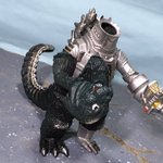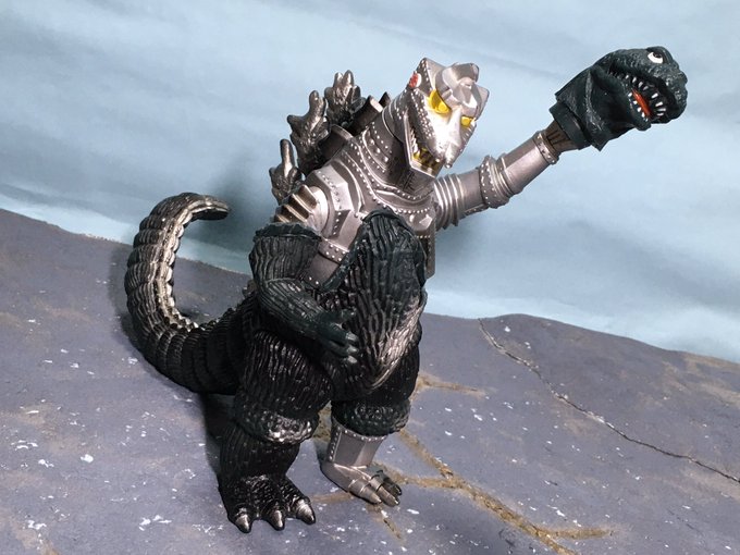 #夜のフィギュア撮影会 お題『改造』 ゴジラとメカゴジラのソフビを改造して作った『トイグラフ メカゴジラ 50%』っぽいフィギュア😄 #メカゴジラ #ゴジラ #MechaGodzilla #Godzilla #トイグラフ 風 #ソフビ #ゴジラVSメカゴジラ #オモ写