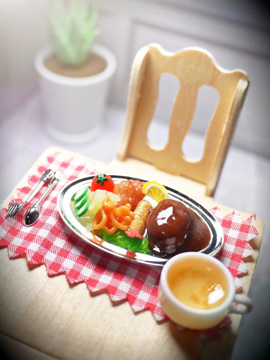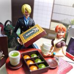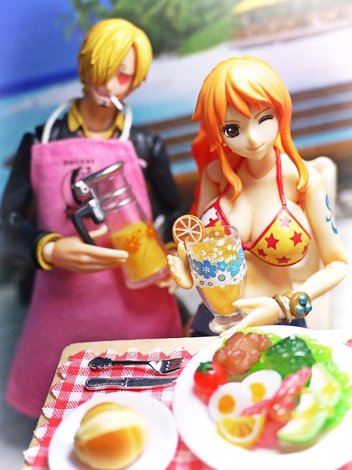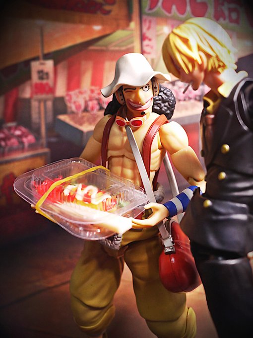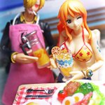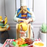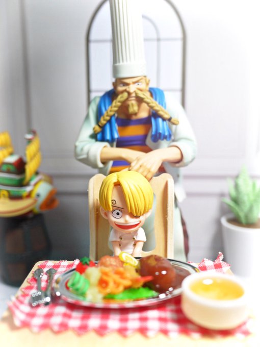 #夜のフィギュア撮影会 11/3 お題 『フリー』 #トイズスピリッツ のガチャの「 #街の洋食屋ランチマスコット 」をゲットしたのでサンジ&ゼフでバラティエで試食中風に撮ってみた!相変わらずの高クオリティだしランチョンマット付なのがすごく良い… #onepiece #ガチャガチャ #カプセルトイ