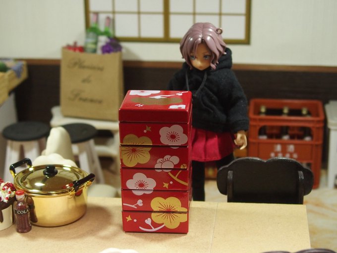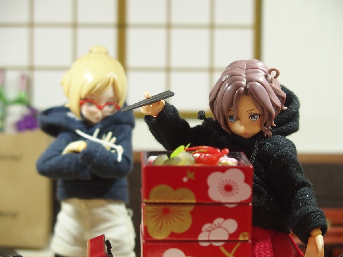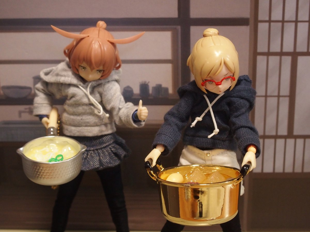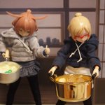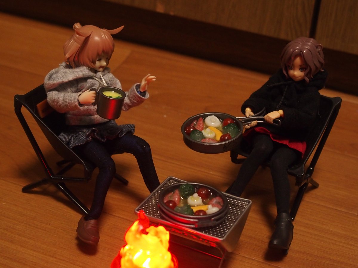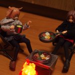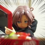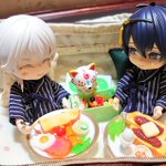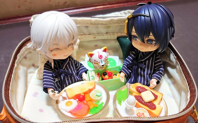 【3/26のお題:しょくひんさんぷる】(既出) ねんどろさんたちの旅先の朝ごはんは、だいたいカプセルトイのミニチュアごはんのお世話になってます😋 #深夜のねんどろ撮影60分一本勝負 #ねんどろいどどーる #トイズスピリッツ
