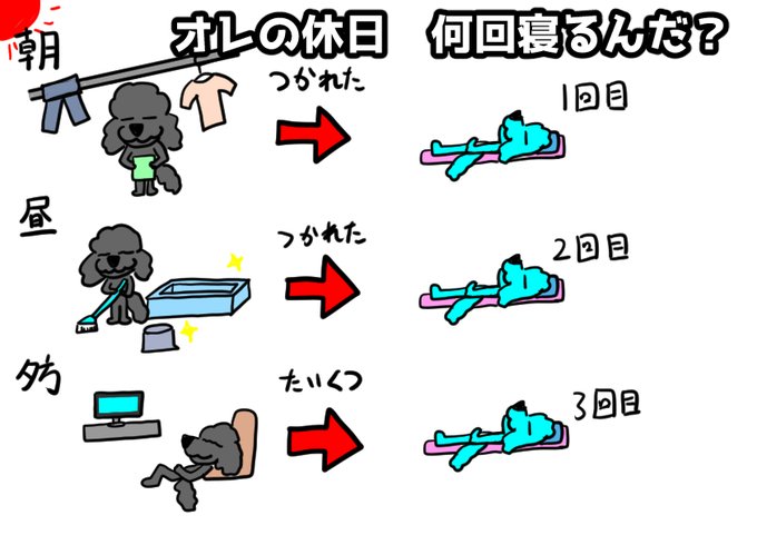 オレは休日何回寝るんだい! もしかして睡眠負債が...。 今週の三連休は大事に使うぞーーー! ブログはこちらから👇 ameblo.jp/yoyo-oo/entry-… #イラスト #トイプードル