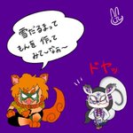 おはようございます🦊🍧 🟠シーサーオレンジ&🟣エゾリスパープル(トゥスニンケ) 沖縄・北海道コンビ 🦁🗯おめぇさんの氷でかき氷作って売ろうぜ!! 🐿💭売上金 私とアナタ8:2なら良いですわよ♪ #イラスト #シーサー #エゾリス #トゥスニンケ #みんなで楽しむTwitter展覧会 #夏色カラフル芸術祭2022