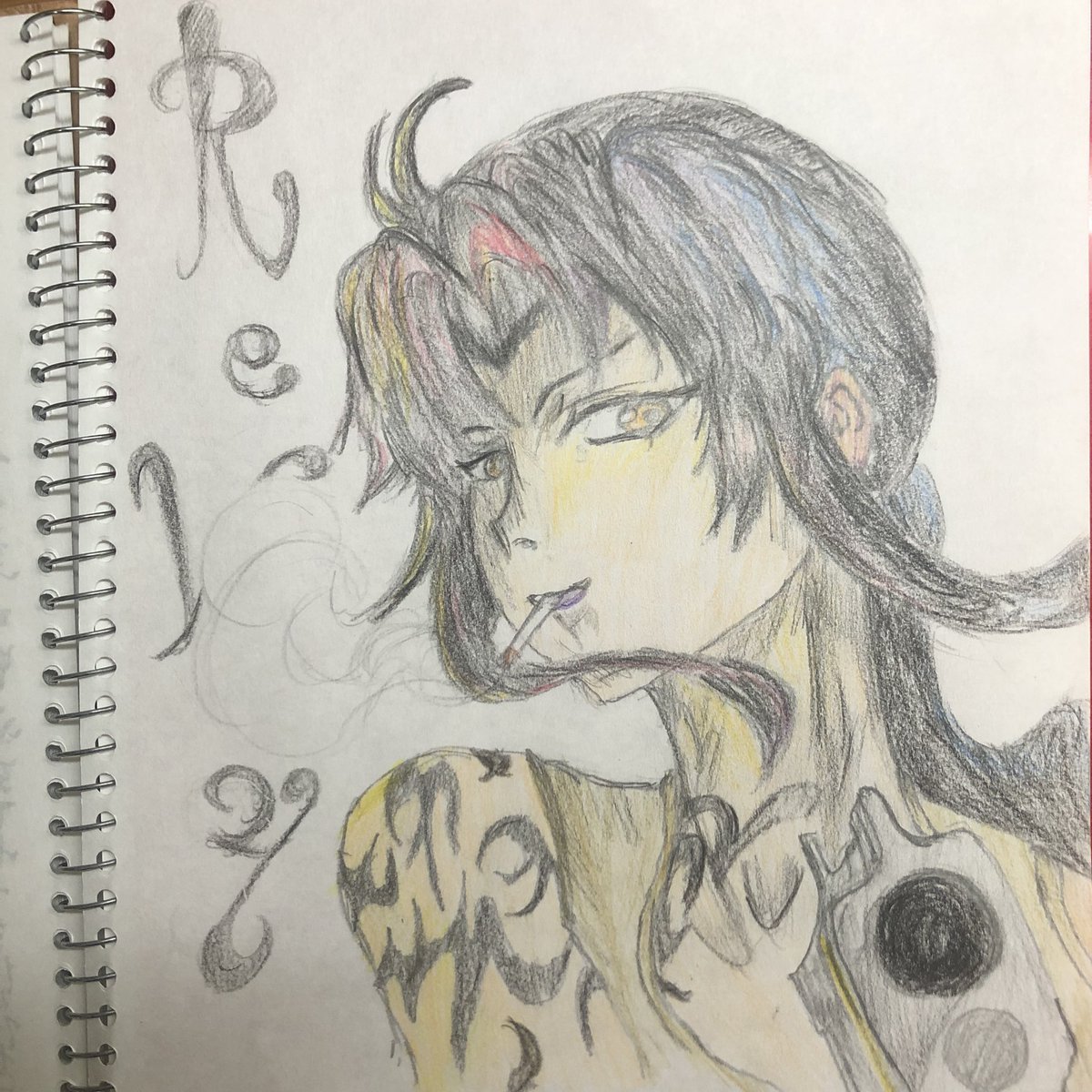 光がどっから当たってるのか、描き途中に迷子になっちゃいました。💦 この人はクーデレとかそういう域を超えててただただ凶悪なのですが⚡️、それでもやっぱり魅力的なキャラ🔫 #落書き #模写 #色鉛筆 #レヴィ #トゥーハンド #ブラックラグーン #絵描きさんと繋がりたい #絵描きさんに学びたい