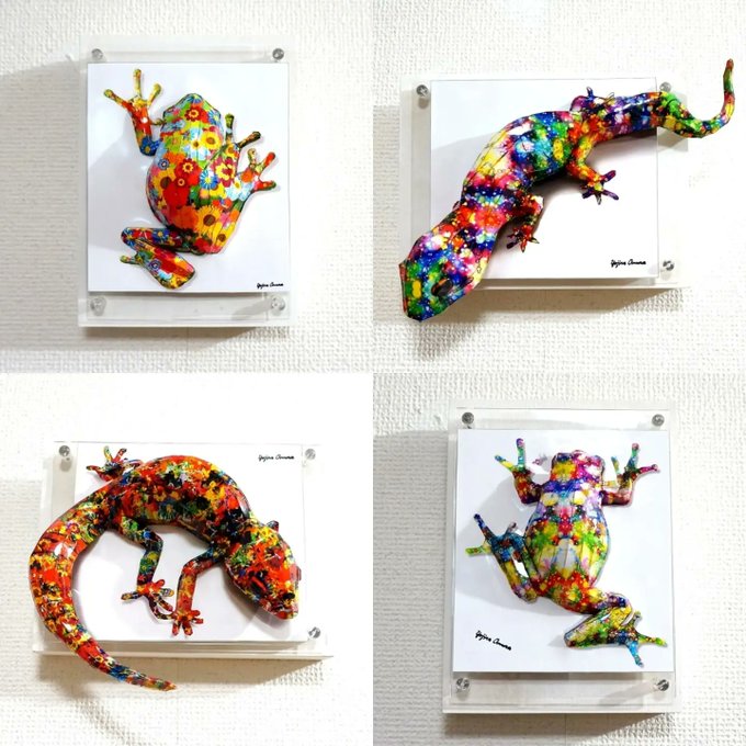 ご契約頂いているFin-chさんにこちら7作品を追加出品して頂きました。 finch.ocnk.net/phone/ #paperart #popart #contemporaryart #ペーパークラフト #アートのある暮らし #ポップアート #爬虫類アート #トカゲアート #大村洋二朗 #カエルアート