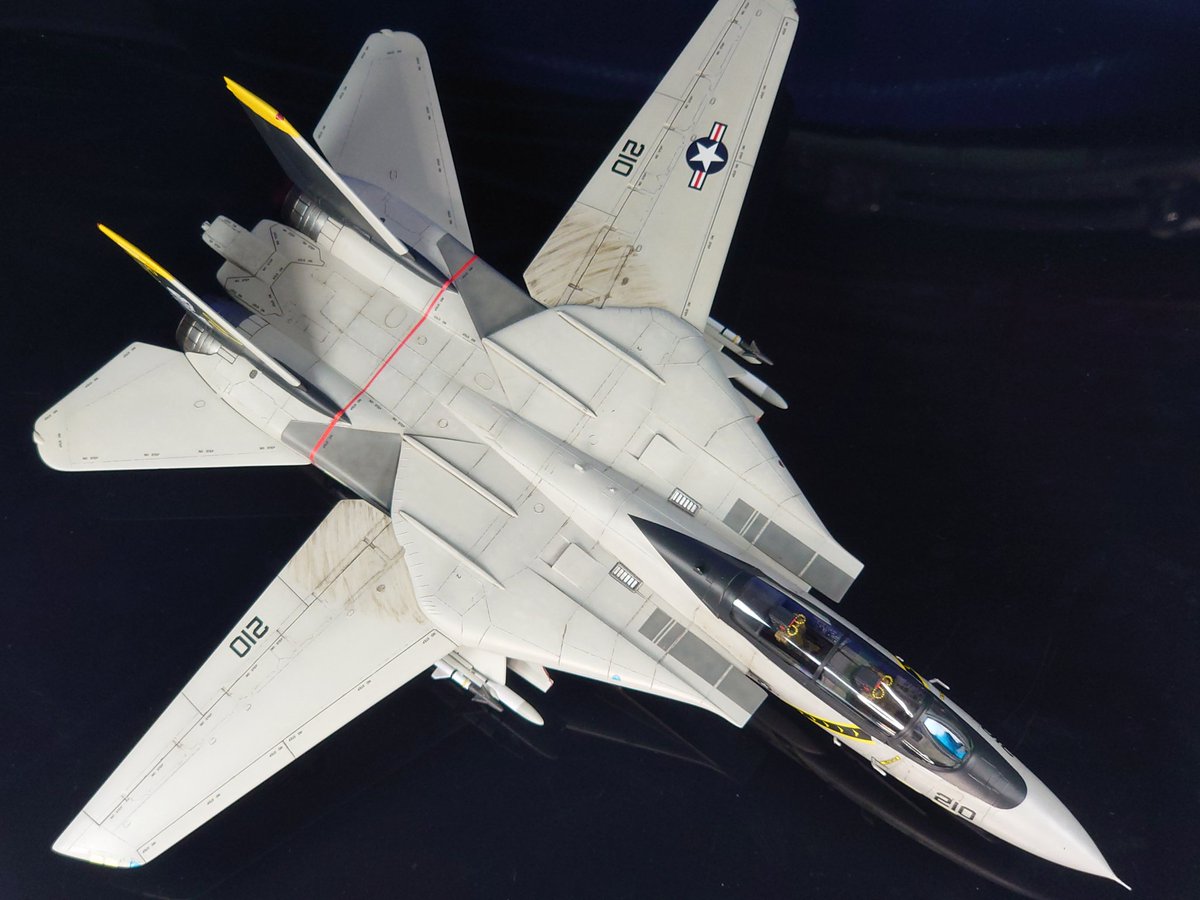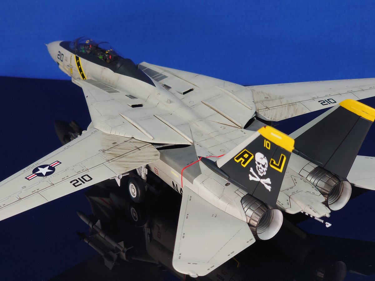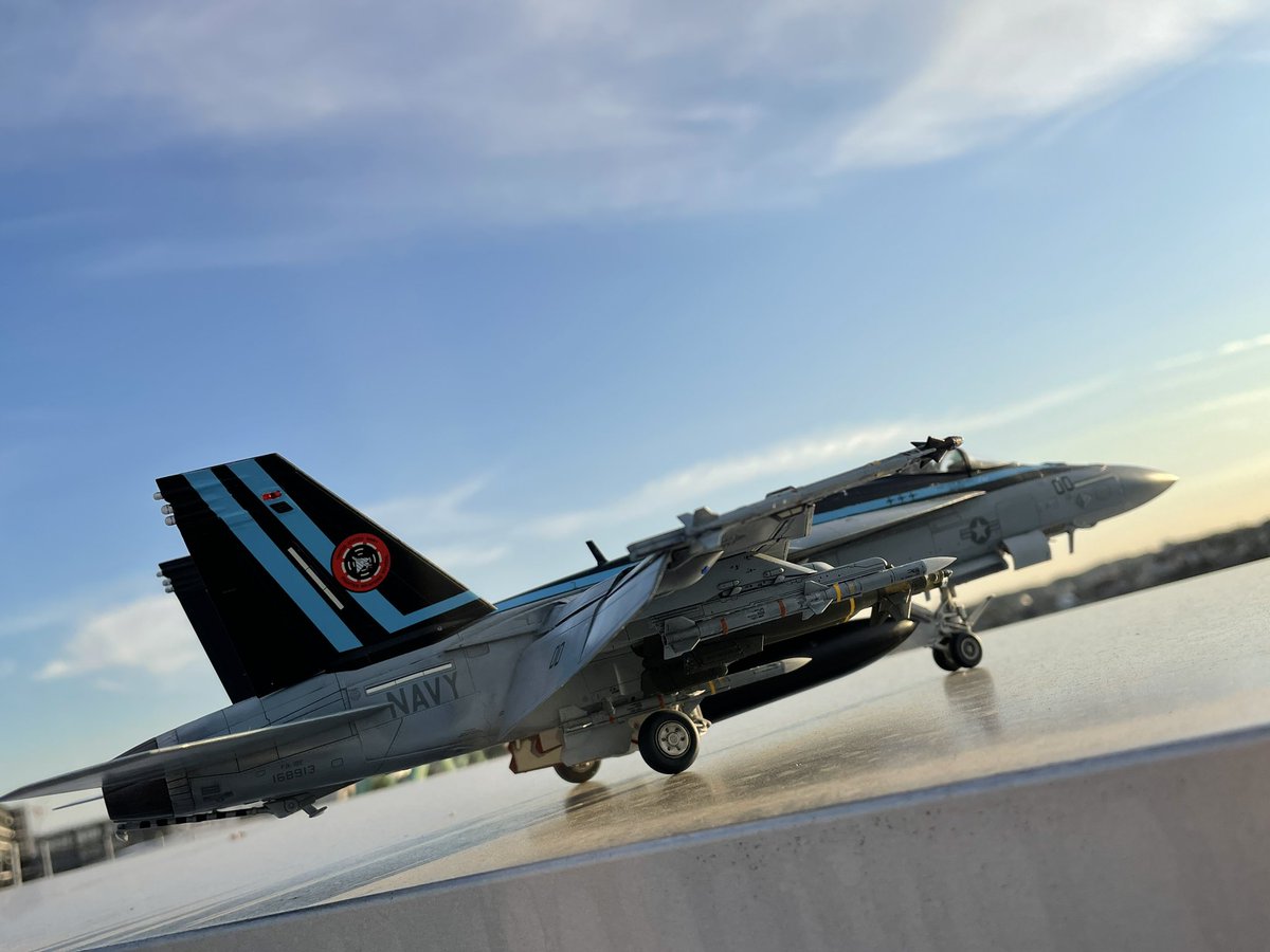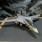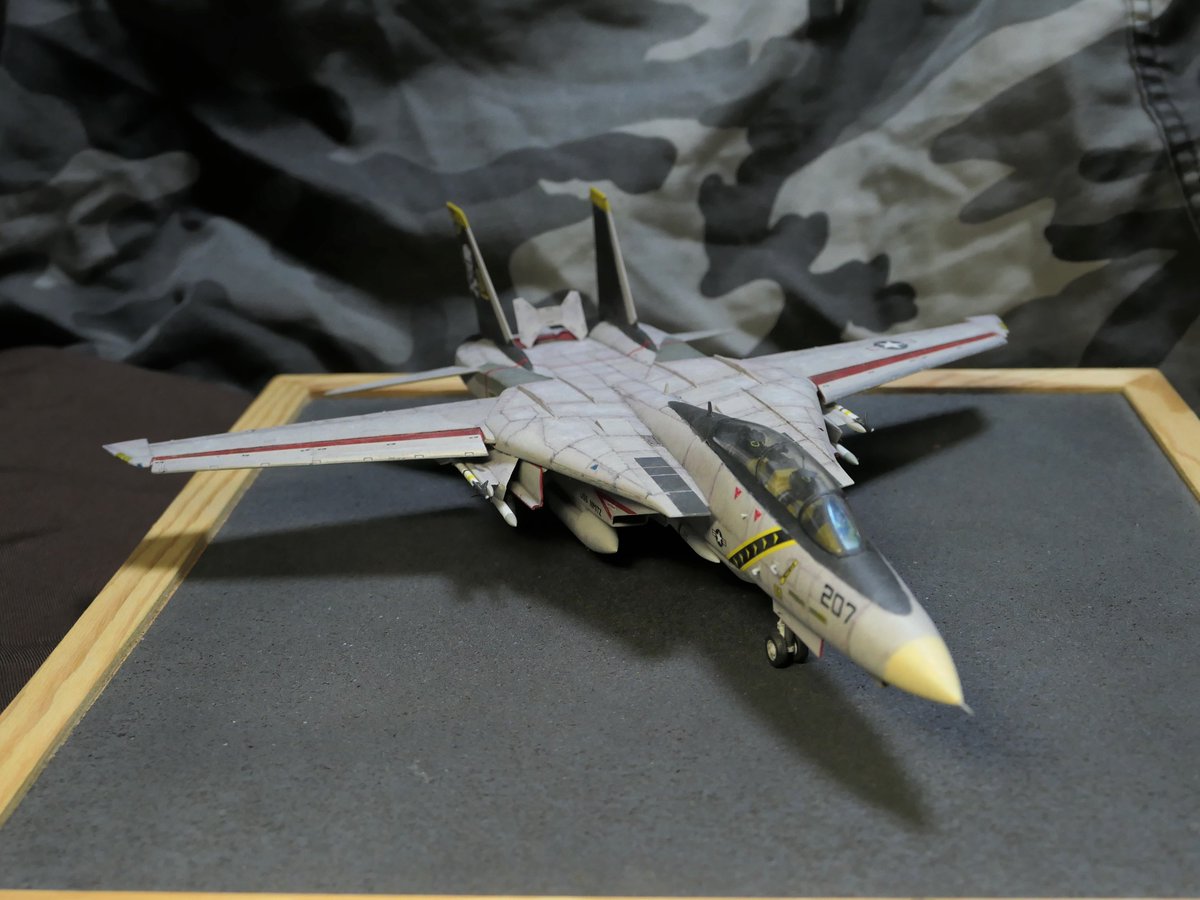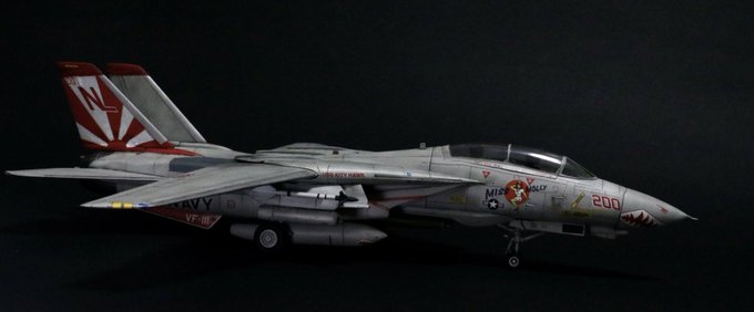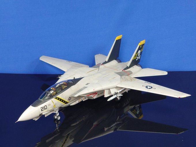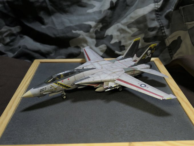 ハセガワ1/72F-14Aロールアウト! \( 'ω')/ヘーイ 凸モールドの旧版ですが、ほぼ無改造の付属デカール仕上げです。ロービジ塗装への過渡期なのでウェザリングはちょっとキツめにしてみました。今回も主催及びRTいいねで応援くださった皆様に感謝を。 #トップガン祭り #トップガン祭り完成