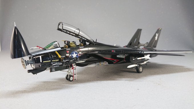 #トップガン祭り #トップガン祭り完成 ハセガワ1/72 F-14A(旧凸版)完成しました!練習がてら筋彫りを0から行いました。デカールはフジミから転用。トップガンにもVF-111はちょこちょこ出てきてますよ〜