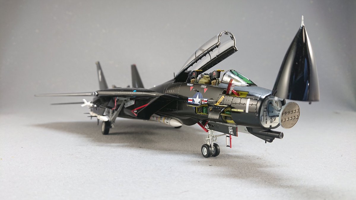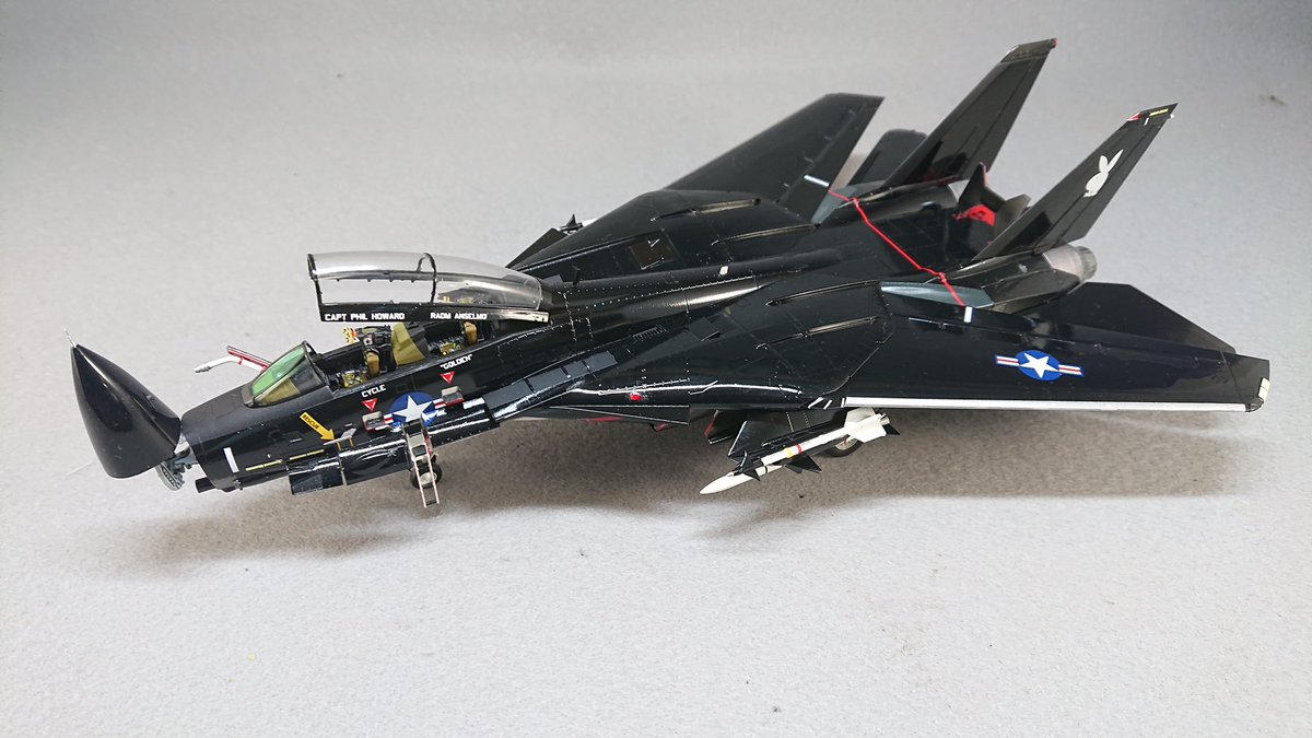#トップガン祭り FineMolds 1/72 F-14A Tomcat Vandy 1, VX-4 完成です とても良いキットでした🎵 ハッチ類はオープンにして、同社のシートベルトやバックミラー、ミサイル類を使用しました‼️ ブラックバニーに真っ白なPHENIXを積ませたかったのです #トップガン祭り完成