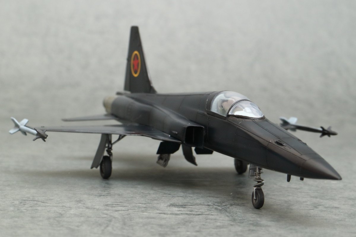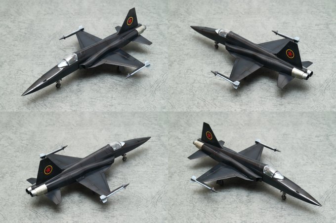 MiG-28完成です。 ホビーボス 1/72 F-5E使用、デカールはドリームモデルF-5Eから拝借。 もっと楽に出来るかと思ったら以外と削るトコ多かったりキャノピー合わなかったり、反省😭 スチル写真参考に半ツヤで仕上げました。 twitter.com/inutaron/statu… ←制作 #トップガン祭り #トップガン祭り完成