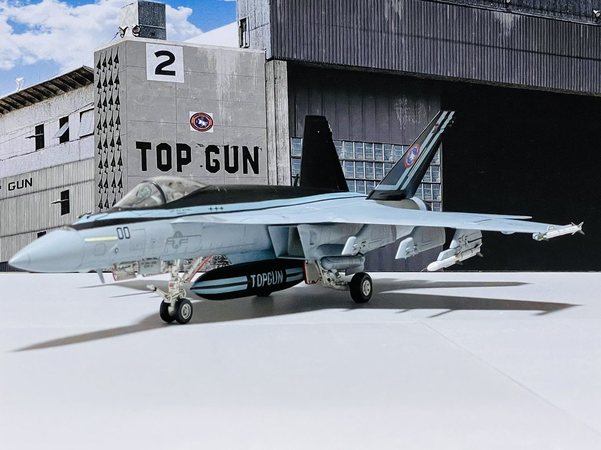 パイロットと吊りモノを追加し、タミヤイタレリ1/72F/A-18Eスーパーホーネット完成です!正直なところミスだらけですが、映画を見た勢いでプラモを作るのは実に久しぶり。形になると嬉しいですね(^-^) せっかくなのでお祭りにも参加させていただきます~。 #トップガン祭り完成 #トップガン祭り