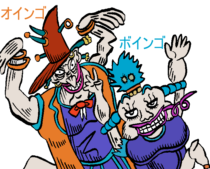 がもちゃん(@gamou7053 )リクエストのオインゴボインゴ(トト神)絵です。実際のオインゴボインゴと比べて、結構服装とか装飾品が違うのに驚いたなあ。 pixiv.net/artworks/98407… #ジョジョの奇妙な冒険 #ジョジョ #オインゴ #ボインゴ #トト神 #jjba #jjbafanart