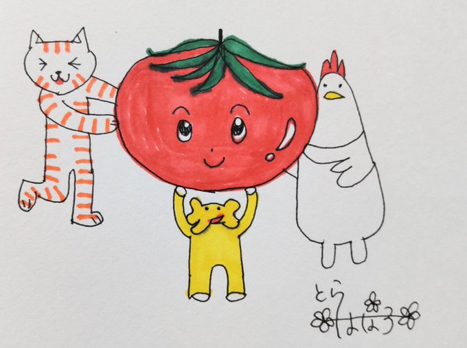 おはようございます!! #トマトの日 大きなトマトさん発見!! ぞうたん、力持ち!!🤭 今日もお仕事の方も、お休みの方も 無理なく楽しく行きましょう🤗 #絵描きさんと繋がりたい #みんなで楽しむTwitter展覧会 #イラスト #油性ペン #マッキー