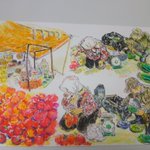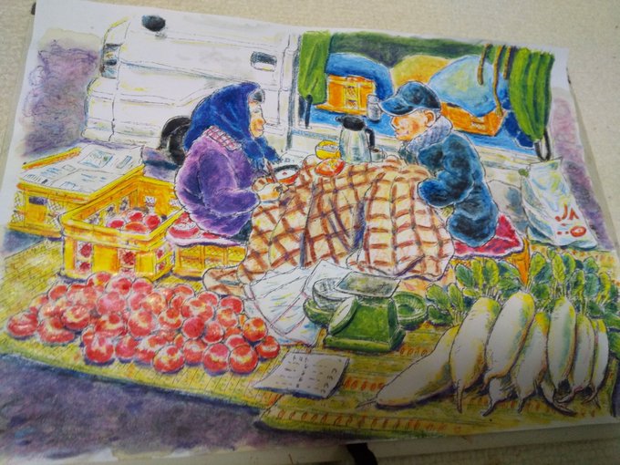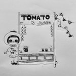 トマトの日🍅 レモネードスタンドならぬトマトジューススタンド🥤 リコピン♪ リコピン♪ #トマトの日 #イラスト #イラスト好きな人と繋がりたい #絵描きさんと繫がりたい #絵柄が好みって人にフォローされたい