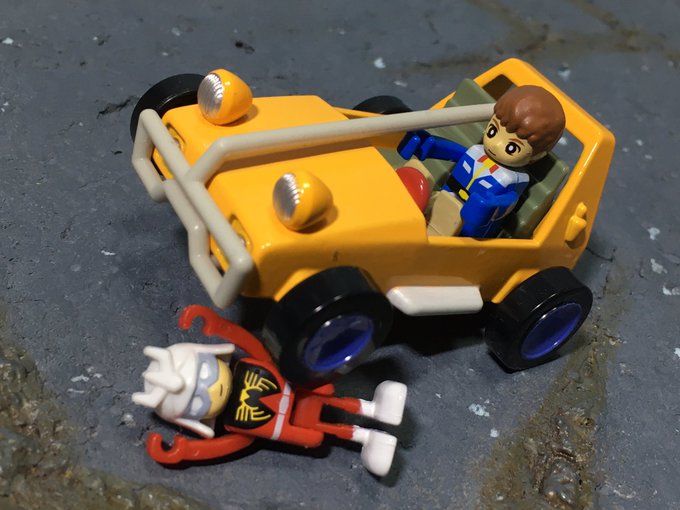 てててててーてててて てててん♪ メック せまるーーショッカー! …脚あっつい! #トミカ の #シン・仮面ライダー サイクロン号をゲット!適度な重量感と造形の良さ…#デスクトップアーミー と合わせるとポケバイぽい。ヘルメットとゴーグル含む服は@yasohachi_3276 さん製、相性ヨシ!