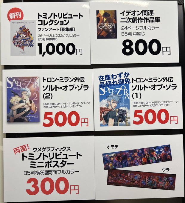 明日11/7(日)の #トミケット 、ウメグラ個人サークル「ウメグラ系」のお品書きは画像のようになっております、お待ちしております♪(新刊はお一人様3部まででお願いします) ちな、トミケット開催概要↓ tomiket.blog.fc2.com/blog-entry-1.h…