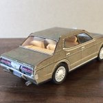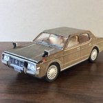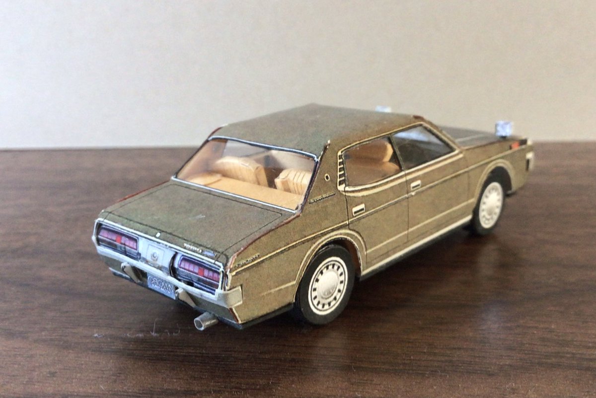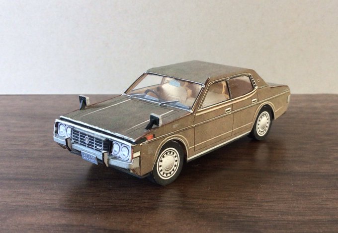 素晴らしき70年代の作りかけを完成。 #高速有鉛デラックス 誌のペーパーモデルを1/64スケールに縮小してディテールアップ。1974年式 #トヨタクラウン 2000EFIスーパーサルーン。どこに手を入れているかはご想像ください。リアパワーシート装着。 #ペーパークラフト