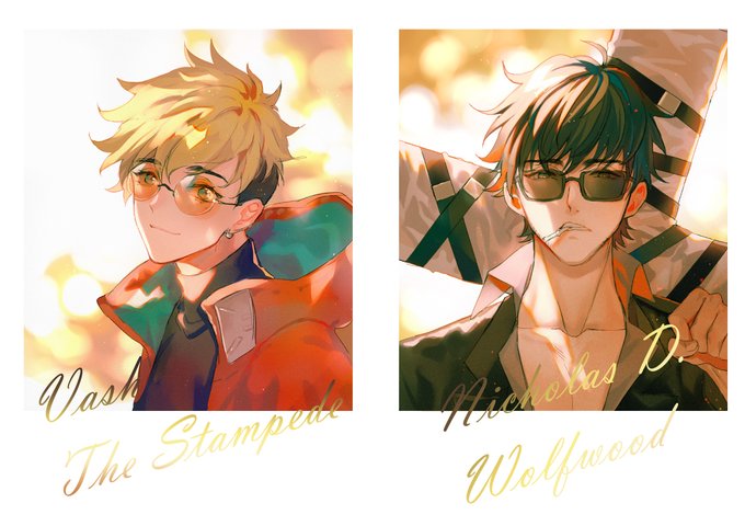 トライガンスタンピードより バッシュ&ウルフウッド。 ウルフウッド 「ほんま、どうしようもない おひとよしやな」 バッシュ 「フフッ、よく言われるよ」 #トライガンスタンピード #ファンアート #フォロワー募集中