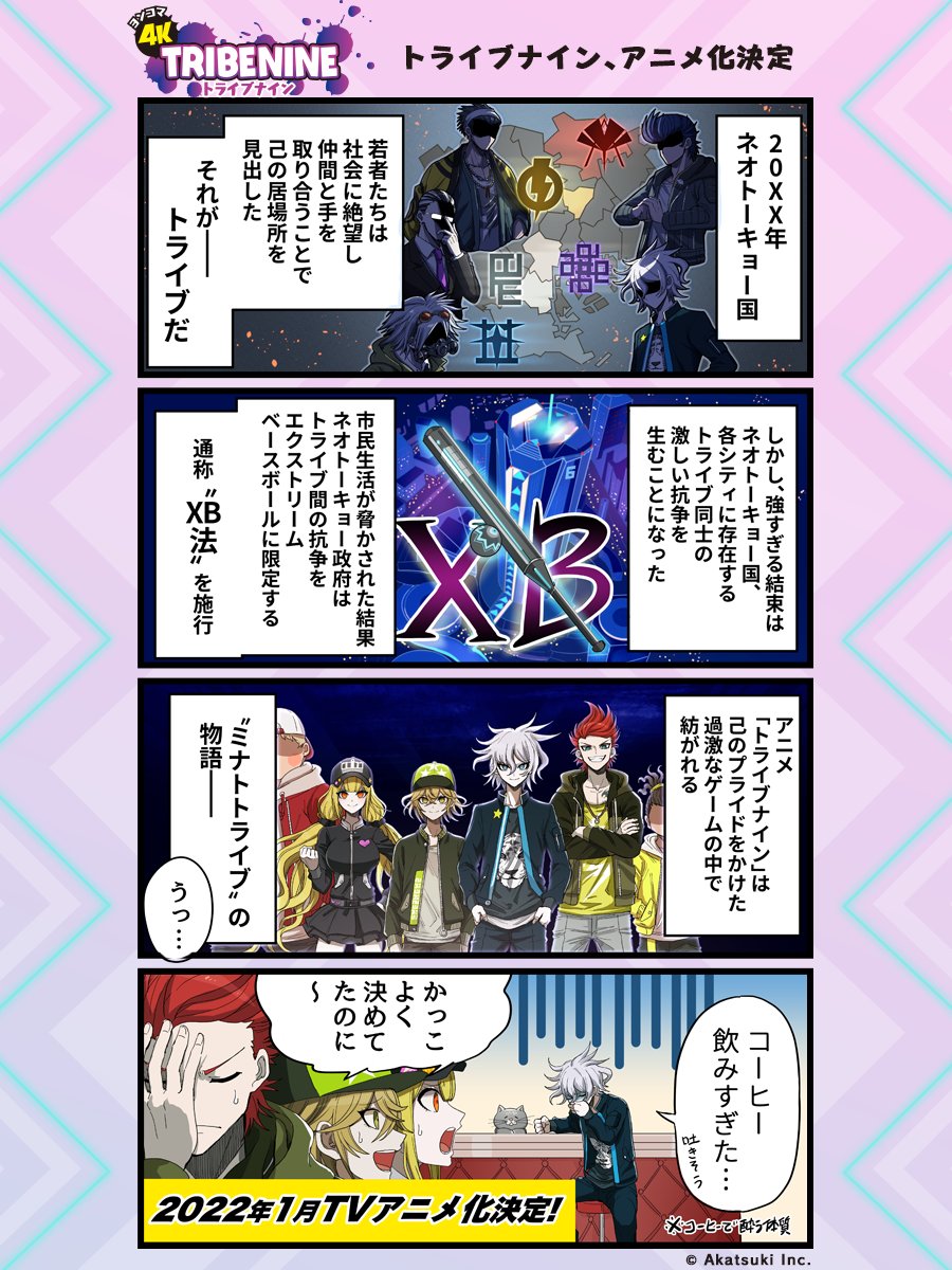 ✏️#ヨンコマトライブナイン ║𝟰𝗞 𝗧𝗥𝗜𝗕𝗘 𝗡𝗜𝗡𝗘 ║Vol.1『トライブナイン、アニメ化決定』 本日より4コマ連載スタート🙌 #トライブナイン の世界や キャラたちの個性豊かな一面を お楽しみください👀 毎週火曜日更新⚡️