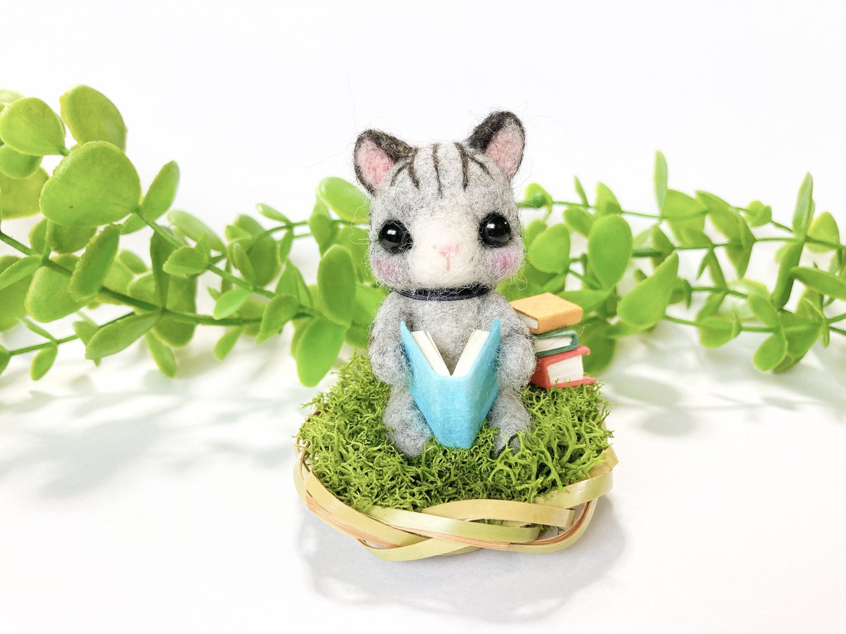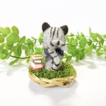 グレーのトラ猫さんの耳やシマは 黒ではなくグレーに馴染むように 他の色を混ぜて作ってます^^* Aki Ako'S GALLERYさんの陽だまり本好きトラ猫さん グレー #羊毛フェルト 置物 minne.com/items/32199151 #minne #minneで販売中 #猫 #トラネコ #needlefelt #にゃんこ #cat