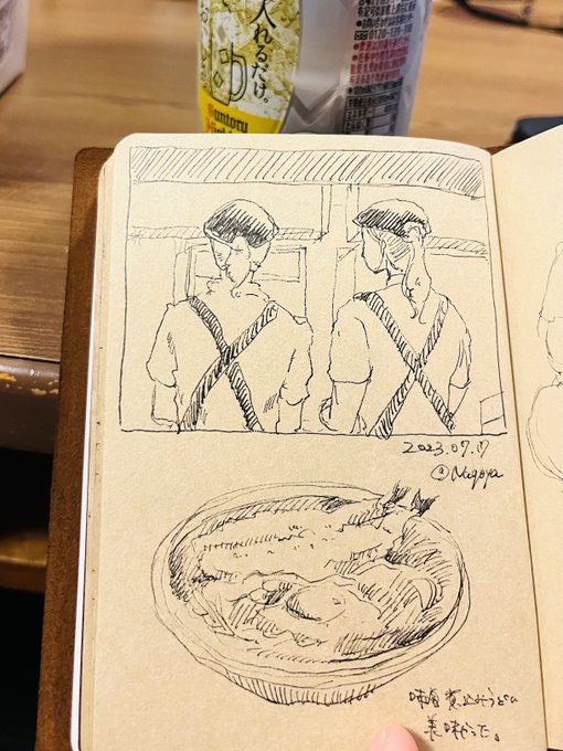 今日まで名古屋。味噌煮込みうどん美味かった。 あまりの暑さに体力の限界。もっと筋トレしないと。明日帰るよん。 #万年筆 #トラベラーズノート #イラスト #ペン画 #アナログ絵 #illustration #drawing