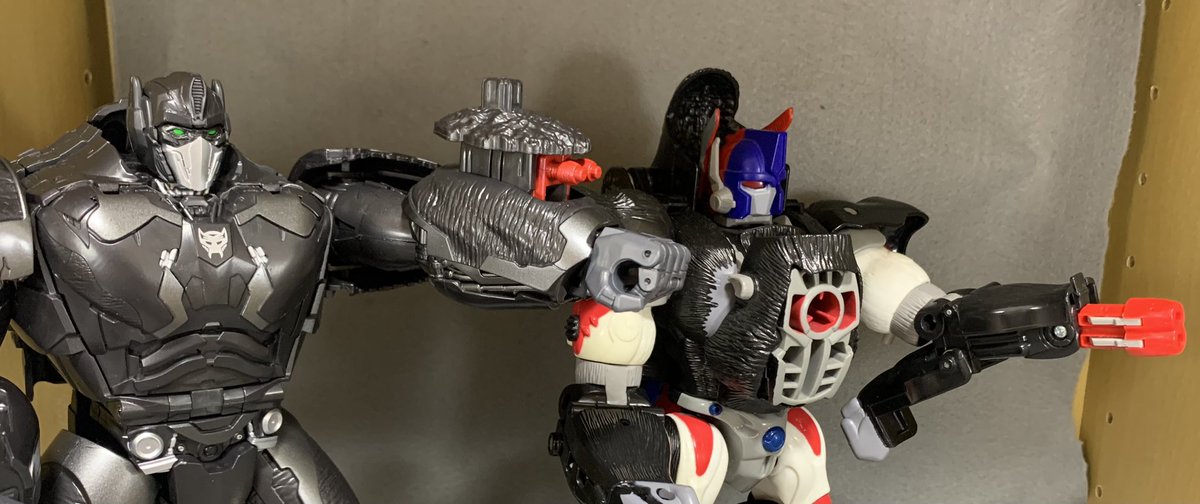 もう言われてるけど覚醒オプティマスプライマル 肩キャノン、腕キャノン、マスクチェンジと往年のウルトラクラスのギミックを踏襲してるの最高🦍 ……加えて「本編開始前の7月中旬に発売」という点も共通していて、26年前の夏のワクワク感が蘇るのもたまらない🦍 #トランスフォーマー出没