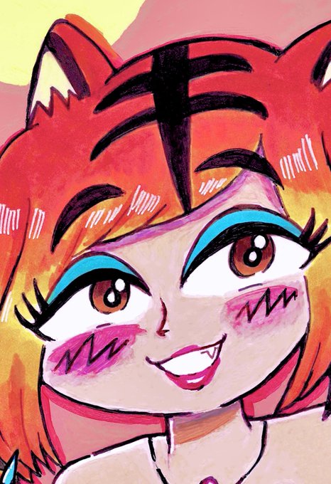 【#ミミより情報】 お久しぶり! #トラ猫姉さん 🐯 どんな物をみんなに見せつけるのかな??💅💄 今夜このあと更新予定‼︎✨✨ #イラスト #illustration #アナログイラスト #ケモ耳 #創作クラスタさんと繋がりたい #絵描きさんと繋がりたい