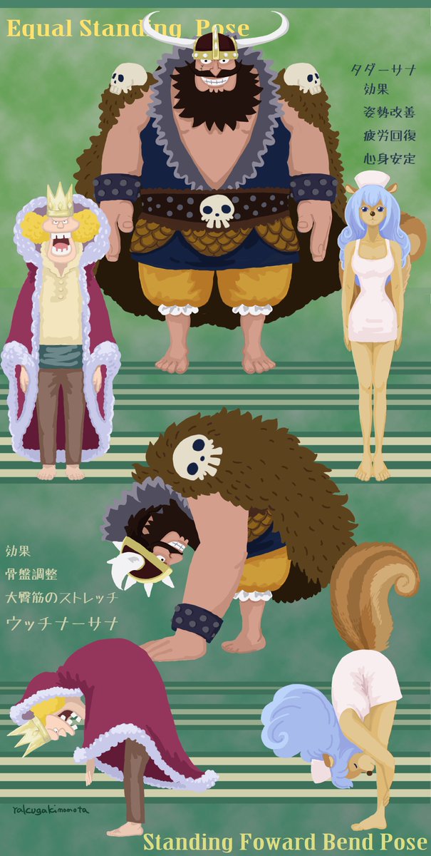 ネット環境が グダグダのままですが、 本日のおうちヨガしませんか? #EqualStandingPose #StandingFowardBendPose 遅れましたが #スタンセン お誕生日おめでとうございます🎉 #スタンディング国王 と #トリスタン が一緒ですwww #onepice #ヨガ #イラスト