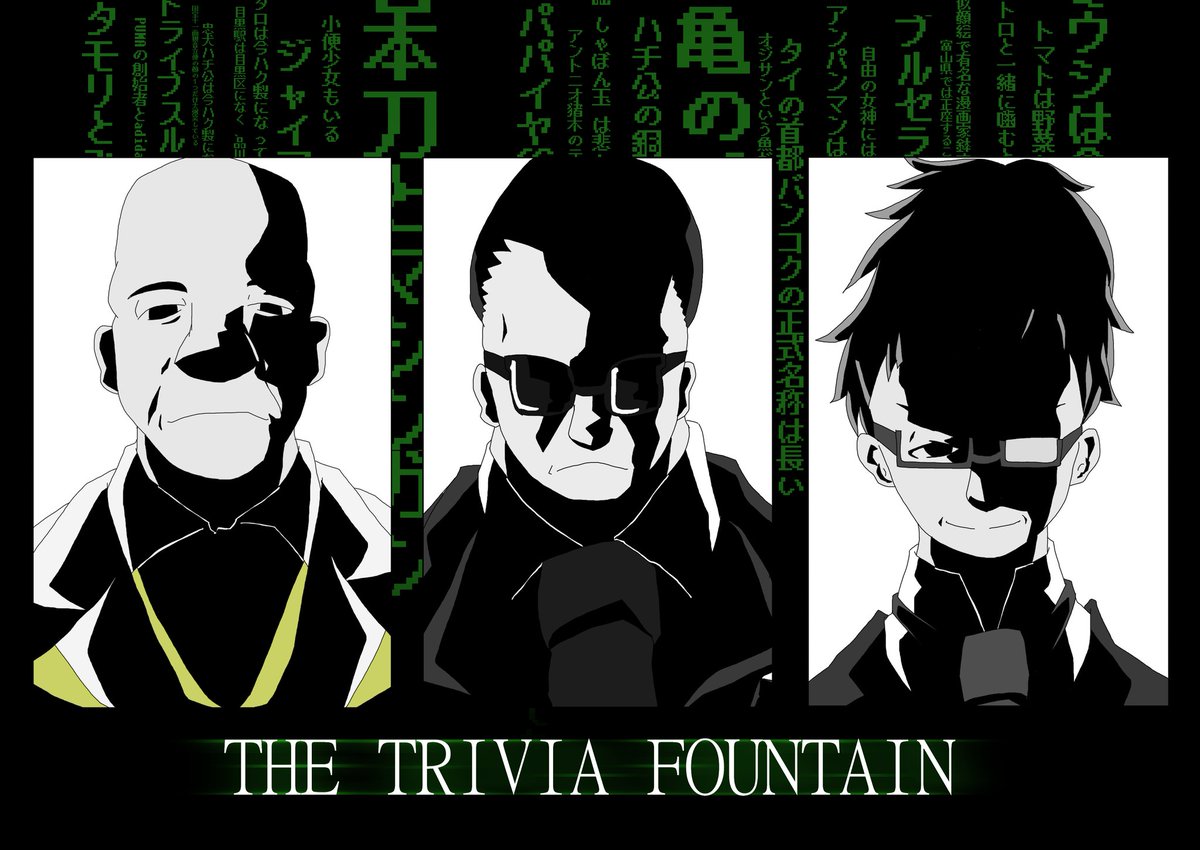 過去絵だけどトリビアの泉のイラストをサイトウ(再投稿) なんとなくマトリックスぽいのはこの番組、結構マトリックスのostや楽曲とか使いまくってたから勝手にトリビア=マトリックスってイメージが定着してた #イラスト好きな人と繋がりたい #トリビアの泉 #イラスト