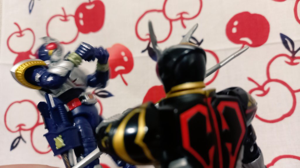 #夜のフィギュア撮影会 『ボケ/ツッコミ』 コンビ名 W・JOKER (0w0)あんた俺を囮に使ったのか! 黙ってないでなんとか言えよ (ネタ振り) (<::V::>)フン! (0w0)ウワァ! 後のトリプルアクセル誕生の瞬間である #仮面ライダー剣 #トリプルアクセル
