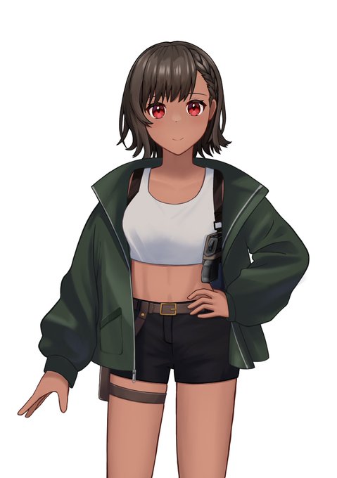 もう1人コンテストに応募しました!こちらも褐色の女の子です😅銃を懐に仕込んでます。 表情差分全12種です。よろしくお願いします! #トリプルコラボコンテスト #GENSEKIコンテスト #立ち絵 #イラスト