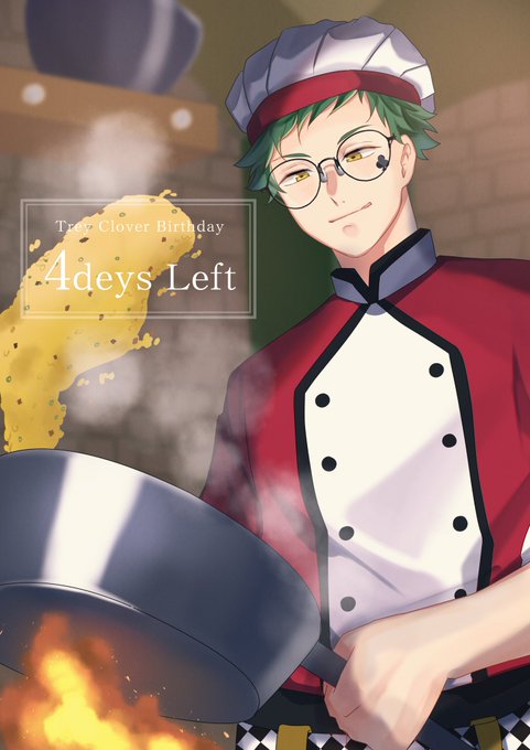 トレイ・クローバー誕生日まで あと《4日》 『マスターシェフ×トレイ・クローバー』 リボンの結び方が一文字結びなの大好き #トレイ・クローバー誕生祭カウントダウン #トレイ・クローバー誕生祭2021 #ツイステファンアート