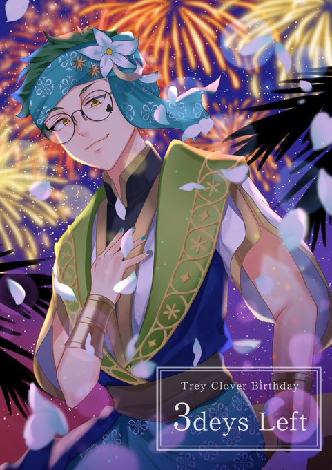トレイ・クローバー誕生日まで あと《4日》 『アリアーブ・ナーリヤ×トレイ・クローバー』 雰囲気も衣装もぜんぶすき #トレイ・クローバー誕生祭カウントダウン #トレイ・クローバー誕生祭2021 #ツイステファンアート