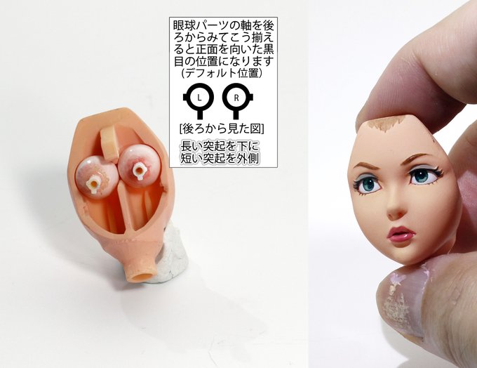 「天地ひろみ&ムータン」TFO5にてお買い求めの皆様ありがとうございました!キット無事到着したでしょうか?組み立て楽しんでくださいませ! 眼球の組み込みがわかりづらいので説明写真投下! 組説にも図で解説していますがinnerfaceパーツめっちゃ嵌め込みきついです💦 #トレフェスオンライン5