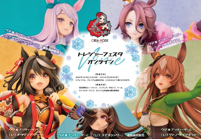 【CREA MODE】(クレアモード)より❄️ \#トレフェスオンライン9 参加!/ 12/10(土)11:00 ~ 12/11(日)18:00 WEBサイトにて、おしながきを公開いたしました 皆様、ぜひお越しください! CREA MODE→creamode.info TFO会場→tfo.hobima.com/index.php #ウマ娘 #ガレージキット #フィギュア